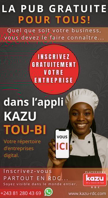 Vous voulez augmenter votre visibilité avec "KAZU MUANDA" , publier une annonce, devenir notre partenaire, ou faire votre publicité?